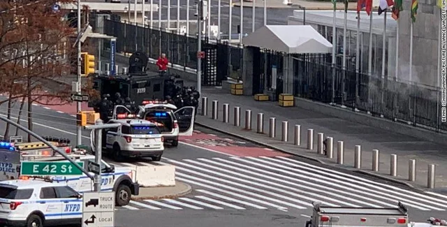 Сообщается, что о вооруженном мужчине стало известно после звонка в службу 911. Департамент полиции Нью-Йорка сразу отреагировал и выехал к штаб-квартире, после чего перекрыл движение Восточной 42-й улицы и 1-й авеню.