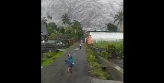 В субботу вулкан выбросил огромный столб дыма, который заслонил солнце и накрыл несколько близлежащих деревень. Местные жители сняли на камеру, как люди в панике бегут от серого облака, несущегося к ним.