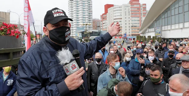 Белорусский оппозиционер Сергей Тихановский во время протестов в 2020 году