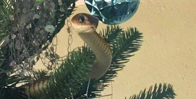 Однако, когда глава семьи раздвинул мишуру и украшения, он обнаружил там совсем другую гостью. В верхних ветвях ели притаилась смертельно опасная змея бумсланг — одна из самых ядовитых в Африке. Ее яд вызывает кровотечение и способен убить человека даже в малых дозах.