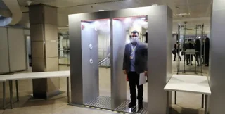Стоять на обработке серебром рекомендуют не менее 10 секунд. Также работники СМИ получили на входе средства индивидуальной защиты.