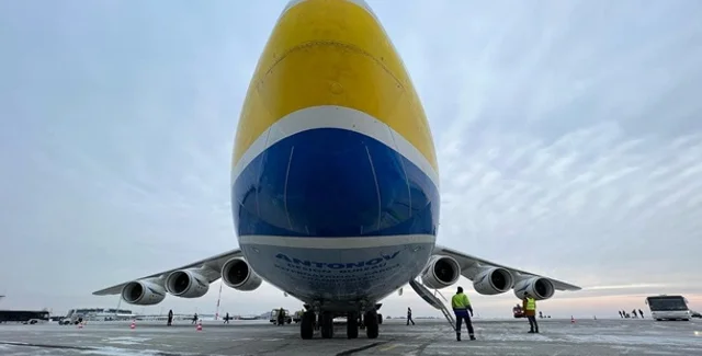 Ан-225 "Мрия" является самым крупным и мощным в мире транспортным самолетом, который спроектировали в Украине. Максимальная взлетная масса судна — 640 т.