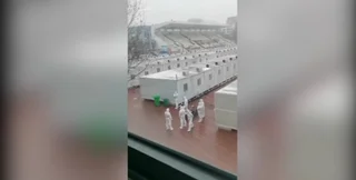 Задержанные показали рабочих в защитных костюмах, раздающих еду тем, кто содержится в лагерях в эпицентре последней вспышки в Китае.