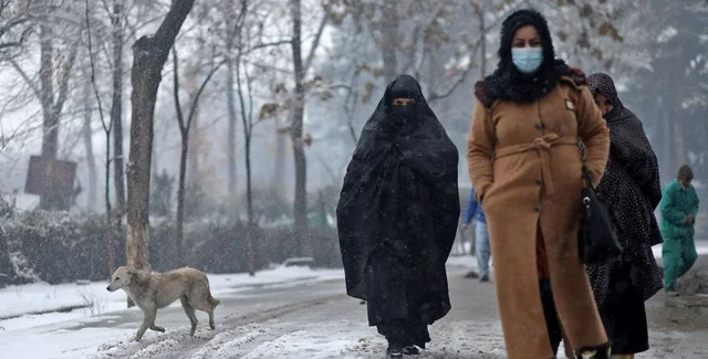 Афганские женщины идут по улице во время снегопада в Кабуле. Афганистан, 3 января 2022 года.