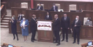 В итоге за принятие проекта поправок в Кодекс о правонарушениях, предусматривающих, в том числе, запрет символов Z и V и георгиевской ленты, проголосовали 53 депутата от правящей партии PAS.