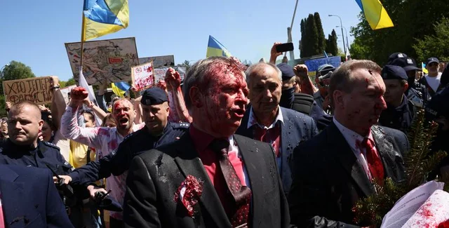 Кричали "фашисты": в Варшаве украинцы облили красной краской российского посла (видео)
