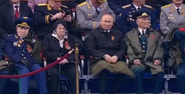 На одном из видео, снятых во время парада 9 мая, Путин сидит с одеялом на коленях.