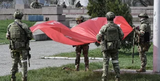 Этой весной российские солдаты развернули "знамя победы" над оккупированным Херсоном | Фото: РИА Новости