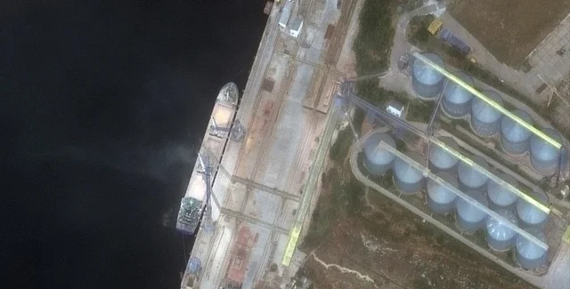 Компания Maxar показала спутниковые снимки российских кораблей с украинским зерном, которые идут под флагом РФ в Сирию. На снимках видны два грузовых корабля, пришвартованных в порту оккупированного Севастополя, которые заполняются зерном. Об этом сообщает Sky News.