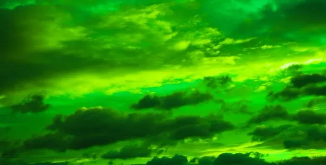 "Грозы обычно случаются ближе к вечеру, когда небо приобретает легкий красноватый оттенок. Когда угол наклона солнца медленно начинает приближаться к горизонту, частицы в грозовых облаках значительной глубины и содержания воды будут в основном рассеивать синий свет. Когда красноватый свет, рассеянный атмосферой, освещает голубые капли воды/льда в облаке, они светятся зеленым", — сказал он.