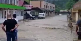 По всему городу работают сирены. Очевидцы сообщают, что на Батумском шоссе поток воды сносит автомобили.