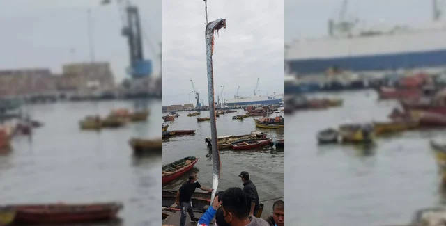 Почти пятиметровую веслоносую рыбу поймала группа рыбаков из города Арика. В публикации отмечается, что поверье, согласно которому рыба является предвестником катастроф, принадлежит, в частности, японской культуре. Длина таких существ может достигать 11 метров, они живут в глубокой воде и выплывают на поверхность только в случаях, если они заболели, умирают или размножаются.