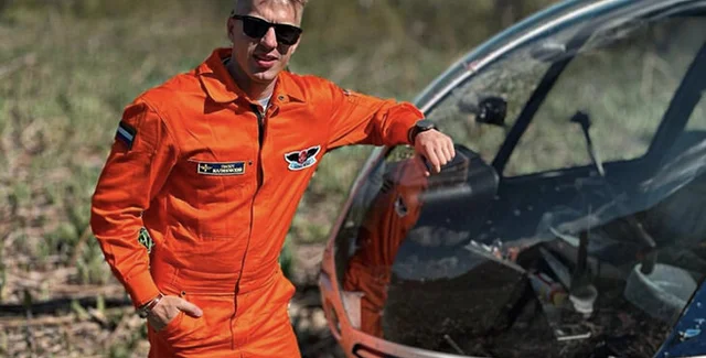 Российский биатлонист Игорь Малиновский со своим вертолетом