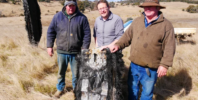Фермеры Джок Вэлланс и Мик Майнерс и космический эксперт Брэд Такер с космическим мусором SpaceX | Фото: ABC News