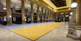 Желто-голубую гигантскую "мозаику" разместили на полу Большого банковского зала Wintrust Financial Corporation.
