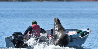 Морской лев прыгнул в лодку рыбака, спасаясь от китов-убийц (фото, видео)