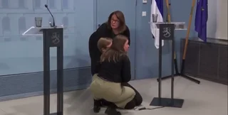 Глава МВД Финляндии упала в обморок на брифинге, посвященном ЧП на "Северных потоках" (видео)