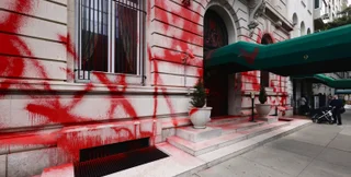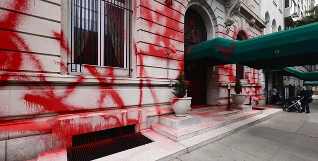 Здание консульства РФ в Нью-Йорке облили красной краской (видео)