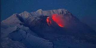 На Камчатке наблюдается извержение Ключевской сопки. Это самый высокий вулкан на материке. Кроме него проснулся еще и вулкан Шивелуч.