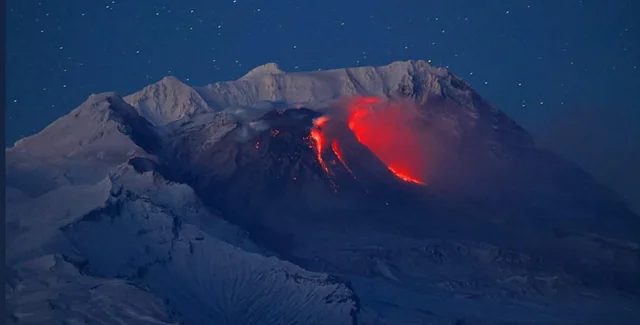 А вулкан Шивелуч – самый северный из действующих вулканов российской Камчатки. Одним из самых больших считается его извержение 1964 года. Тогда столб пепла достиг высоты 15 километров, а обломки вулканической породы унесло на 20 километров.