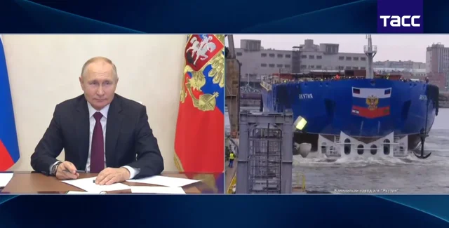 Не выходя из кабинета: Путин "спустил на воду" гигантский атомный ледокол "Якутия" (видео)