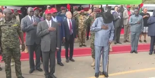 Президент Южного Судана, 71-летний Сальваторе Киир Маярдит обмочился во время звучания гимна страны. Курьезные кадры показал телеканал Kivu News 24 в Twitter.
