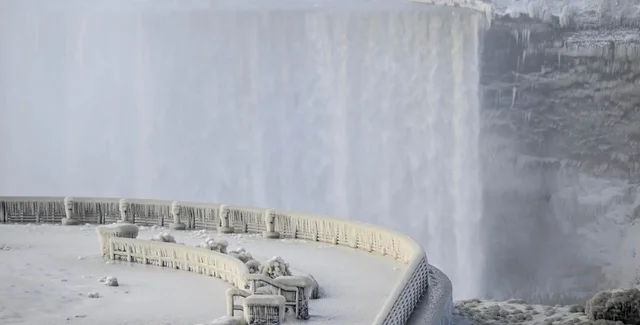 Воды популярной туристической точки покрылись слоями льда в районе американского штата Нью-Йорк и канадского Онтарио. Причиной замерзания называют сильную метель в Буффало, штат Нью-Йорк, которая произошла примерно в 40 километрах от водопада и унесла жизни десятков людей.