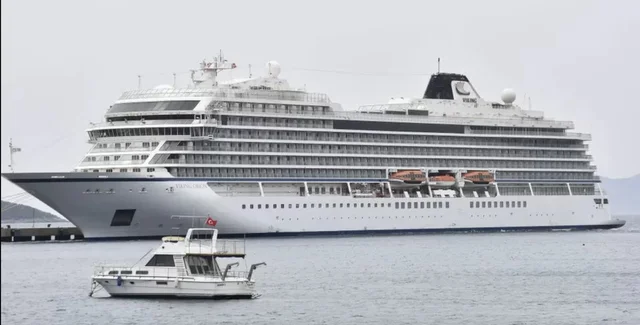 Издание пишет, что 14-палубное судно на 930 человек, построенное в 2018 году, бросило якорь примерно в 27 километрах от берега, пока идет очистка.