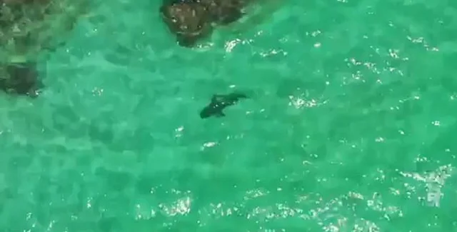 Во время наблюдения за водой с помощью дрона мужчина заметил акул в нескольких метрах от пляжа и сообщил спасателям.