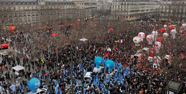 Французы вышли на акции протеста против повышения пенсионного возраста. По данным МВД Франции, на улицах находится около 1,12 миллиона человек.