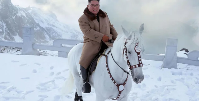 Лошади играют важную роль в культе личности лидера Северной Кореи Ким Чен Ына, а государственные СМИ часто публикуют фотографии, на которых диктатор катается верхом на горе Пэкту.