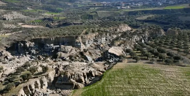 В результате мощного землетрясения в Турции на некоторых участках территорий появились разломы. В сети появились снятые с квадрокоптера кадры разлома земной коры в деревне Тепехан на территории, где находится оливковая роща, которые образовались в момент стихийного бедствия. Видео опубликовано турецким новостным каналом TRT Haber.