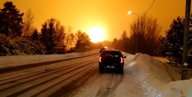 Отмечается, что на месте взрыва образовался высокий яркий огненный столб, который видно на большом расстоянии о места происшествия.