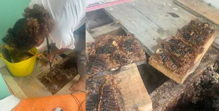 Семье был выставлен счет на 10 000 фунтов стерлингов за удаление улья и всего меда, поэтому пара и их друзья надели резиновые перчатки и за четыре недели убрали 20 мешков с медом. Но все оказалось не так просто. Рой пчел налетел на них, чтобы попытаться забрать мед себе, но, к счастью, никто не пострадал.