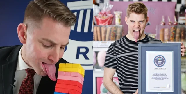 Владелец самого длинного языка в мире языком установил уникальный рекорд (видео)