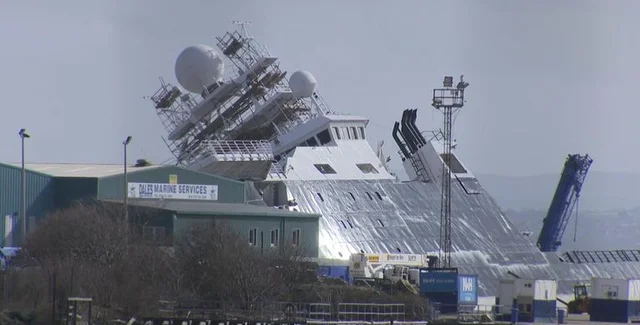 На верфи в столице Шотландии Эдинбурге 33 гражданам понадобилась помощь после того, как стоявший в доке корабль Petrel сильно накренился на бок во время шторма. Об этом сообщает Edinburgh News.