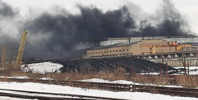 Российские спасатели сообщили, что по прибытию на предприятие там прогремел взрыв, на месте которого виднелся черный дым. Горело трансформаторное масло на площади 30 м.кв.