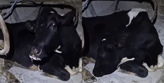 На видео, которым поделилась в интернете жена Джона Лора, видно, как Дорис "притворяется" спящей, чтобы избежать дойки.
