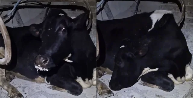 1,5 млн просмотров в TikTok: хитрая корова притворяется спящей, чтобы ее не доили (видео)