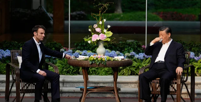 Макрон отправился в Китай с главой Европейской комиссии Урсулой фон дер Ляйен, которая выглядела в Пекине "иногда несчастной" и сдержанно приветствовала всех в аэропорту. Ее непригласили на некоторые государственные мероприятия с Си и Макроном.