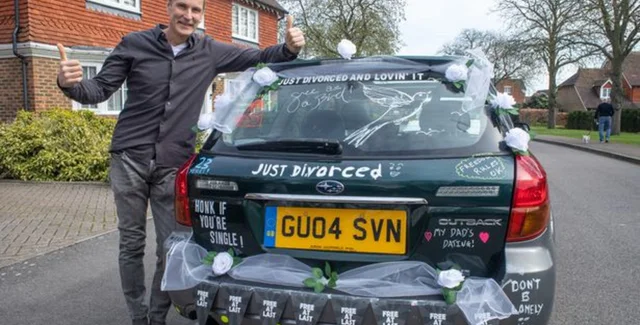 58-летний Ангус Кеннеди отметил свой развод разъезжая по городу Дартфорд (Англия) на машине с надписью "только что развелся". Об этом рассказывает Daily Star.
