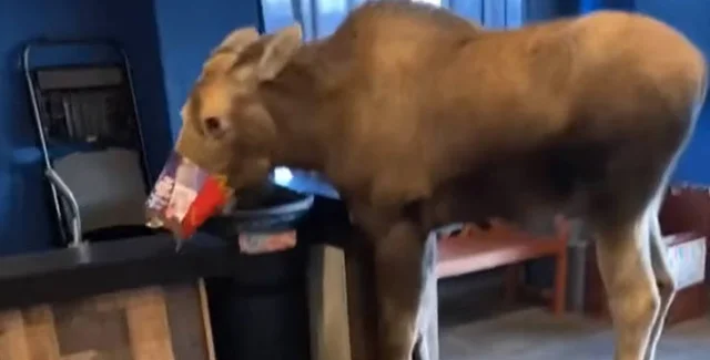 Все ради попкорна: лось забрел в кинотеатр, чтобы перекусить (видео)
