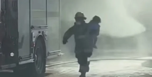 Видео опубликовали сами спасатели в Facebook. В ролике видно, как пожарные на месте происшествия опрыскивают автомобиль пеной. Затем один из них несет на руках ребенка к пожарной машине.