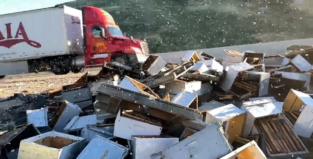 Масштабное ДТП: в США было выброшено около 1 миллиона пчел на шоссе (видео)