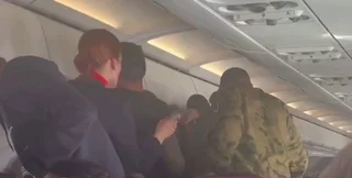 Солдаты РФ возвращались с фронта и в результате конфликта устроили драку прямо во время полета. Пассажиры самолета бросились разнимать дерущихся