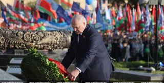 Затем представитель Минска несколько неуклюже прогуливался рядом с внешне казавшимся здоровым 70-летним главой Кремля. Судя по всему, ему было трудно наклониться вместе с другими лидерами и возложить цветы к мемориалу.