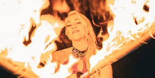 "Я делаю этот трюк, который называется burn off. Я бы сказала, что это один из самых опасных трюков, потому что топливо фактически вытекает из посоха дракона, а скорость, с которой я это делаю, фактически воспламеняет и поглощает меня. Это буквально выглядит так, как будто я нахожусь в центре огня, но на самом деле я нахожусь между ними. Есть и дышать огнем тоже очень опасно", — рассказала Грейс.