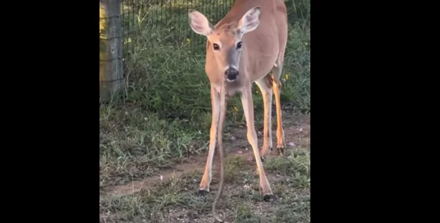 Олень на обочине дороги поймал змею, что очень удивило пользователей в социальных сетях. Охотник Чед Джонс опубликовал на YouTube соответствующее видео.
