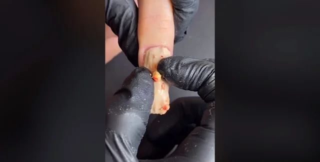 В ролике, который набрал более 572 000 просмотров и более 4 000 лайков, работник сжимает пятнистый и желтый ноготь клиента, из которого сочится искусственный гной. Сотрудники салона показывают процесс, сначала спиливая оригинальный ноготь, который был выполнен в светло-розовом оттенке с белыми кончиками. После нанесения клея сверху помещается кусок полиэтиленовой пленки, а затем в него вводится желтый оттенок.