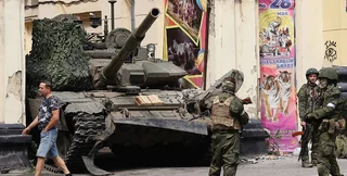 Застрявший в воротах цирка танк "вагнеровцев" в Ростове | Фото: ТАСС